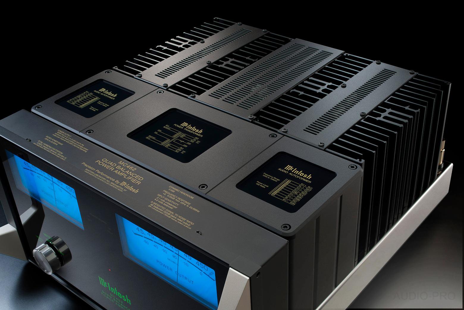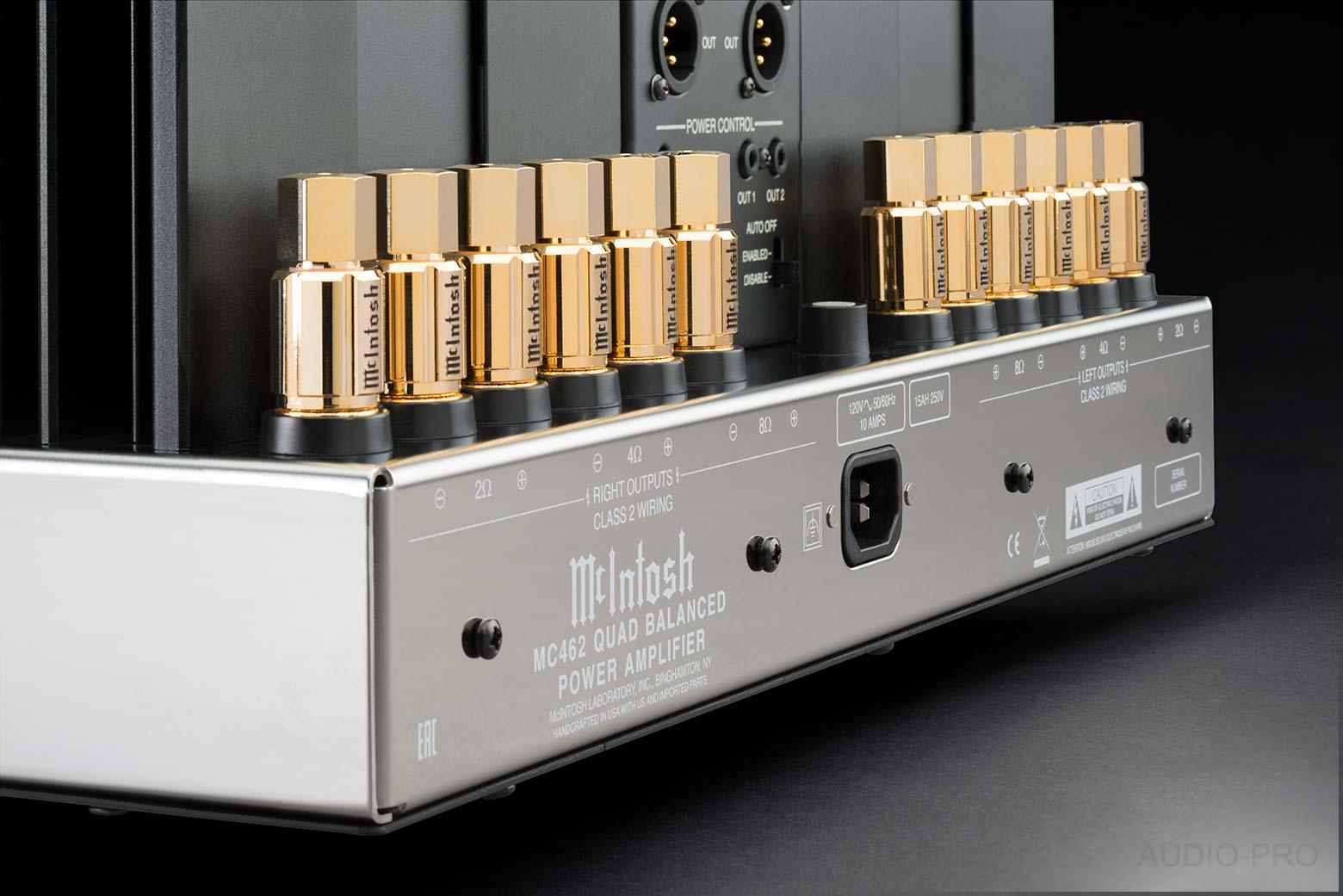 MC462 установлен на красивом полированном шасси из нержавеющей стали и имеет классическую переднюю панель McIntosh из черного стекла, подсвечиваемый логотип, ручки управления, алюминиевые ручки и пару быстродействующих синих ваттметров.